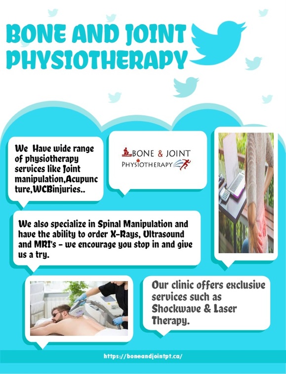 ![]() We Have wide range of physiotherapy services like Joint manipulation,Acupuncture,WCB injuries..For more details you can visit at https://boneandjointpt.ca/