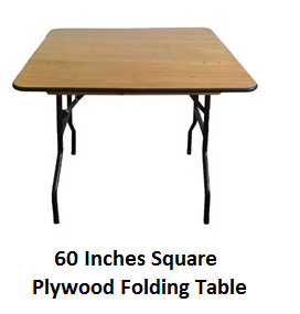 60" Square Plywood Folding Tables -¾" 7-Plywood Folding Tables with Polyurethane Coating on both sides of our Square Plywood Folding Tables with Hardwood Runners.