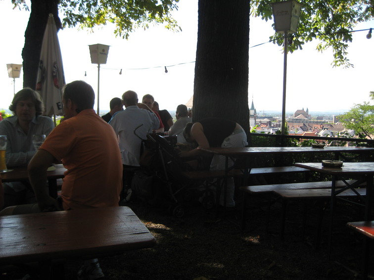 Man sidder godt i skyggen med en stor Hefeweizen efter en god vandretur