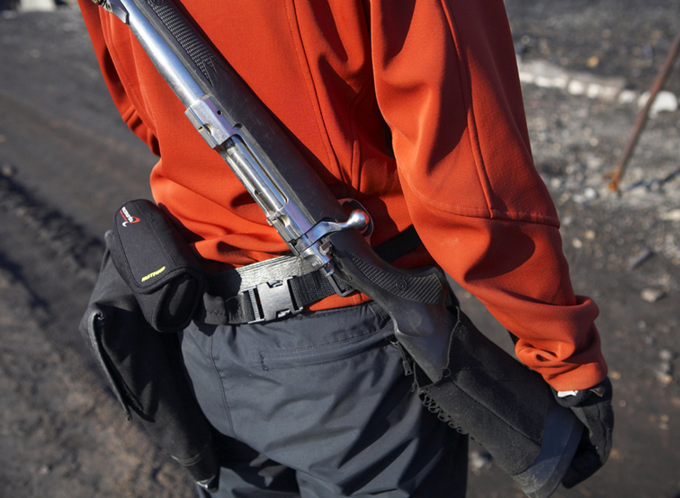 For få dage siden blev der her set en isbjørn. Så vi må (som sædvanlig) sikre os med nødsender, blitzknald og riffel. |