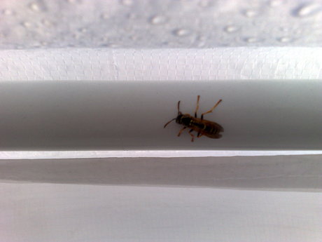 ![]() A guest in the morning. Notice the drops of water on the top of the image. They are on the outsite of the tent. There wasn't any rain during the night, it was just chilly.
