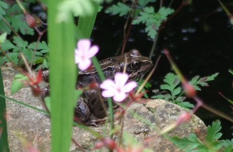 frog near pond on rock