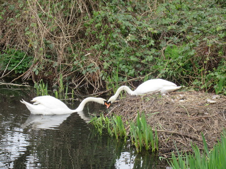 swans nest building