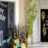 Front door decor ideas are perfect for spring! Collect your kids' old rain boots, an umbrella, or a watering can along with faux flowers.