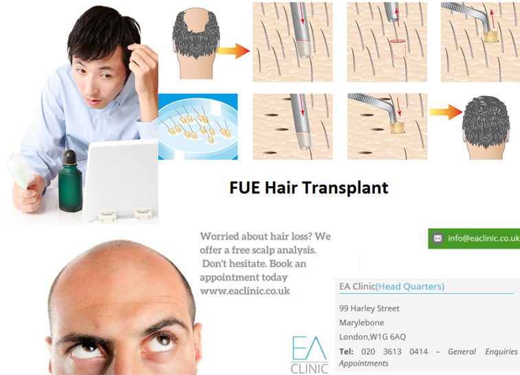 Are you suffering from baldness? Do you want to reverse it? Try FUE Hair Transplant treatment to get back your smart look. EA Clinic provides FUE Hair Transplants in the supervision of Dr. Edwin Anthony, highly experienced FUE specialist in London. Visit http://www.eaclinic.co.uk/fue-hair-transplants/ or get a free appointment at 020 3778 0257. |
