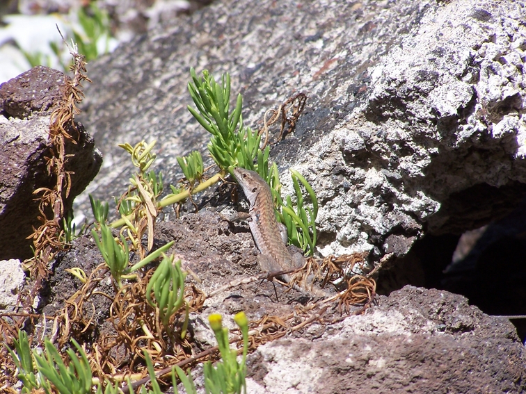 Una lucertolina che spunta dalla tana