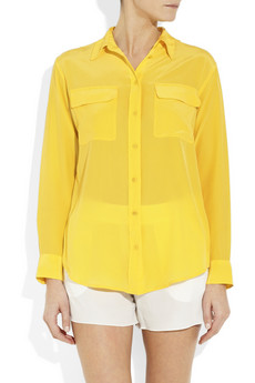 Shop Equipment clothing today and browse through their fabulous collection of women's clothing. Here we have one of their products. Equipment's sophisticated washed-silk shirts have become modern wardrobe must-haves, and we love this lemon crepe de chine style for the chicest way to wear bright color. Contrast the zingy hue with white shorts and tan accents for a standout summer look.