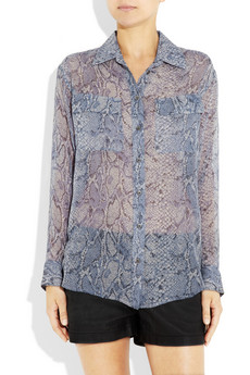 Shop Equipment clothing today and browse through their fabulous collection of women's clothing. Here we have one of their products. Equipment's perfect-fit shirts are mandatory investments for every city girl, so choose this python-print silk-chiffon version to meet your wardrobe requirements for timeless appeal and on-trend cool. Tuck this exotic style into leather shorts for a polished downtown look.