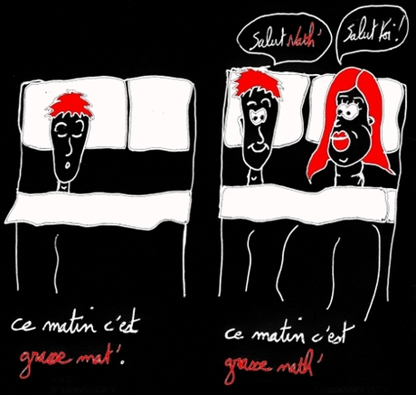 - Ce matin c'est grasse mat' - Ce matin c'est grasse Nath' Et vous faites-vous des grasses matinées et en bonne compagnie ? Pour découvrir d'autres images d'humeurs et d'humours : http://www.facebook.com/photo.php?fbid=10150544434757407Date####----****////.... Pour recevoir cette oeuvre en HD + divers goodies + une chanson live (via webcam), rien de plus simple faites un don du montant que vous voulez (avec Paypal) en cliquant ici : https://www.paypal.com/cgi-bin/webscr?cmd=_s-xclick&hosted_button_id=GCAPHBHSXWLWJ A bientôt, P.S. Concerts : j'adore jouer (déjà plus de 121 représentations) mais je n'ai pas le temps de démarcher... Je propose donc la moitié de mon cachet à qui me trouve une date. Pour mieux me connaître : Merchandising : http://319823.spreadshirt.fr/ |