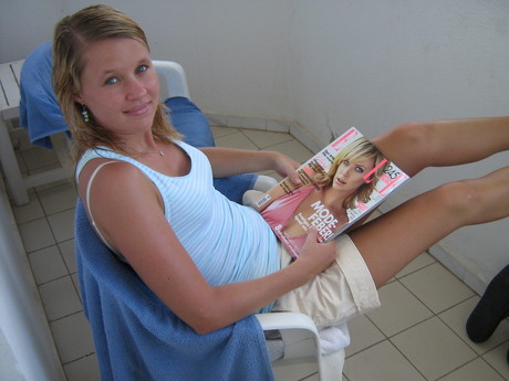 Frida på balkongen efter en dag på stranden