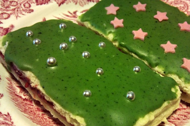 Hindbærsnitte med matcha glasur