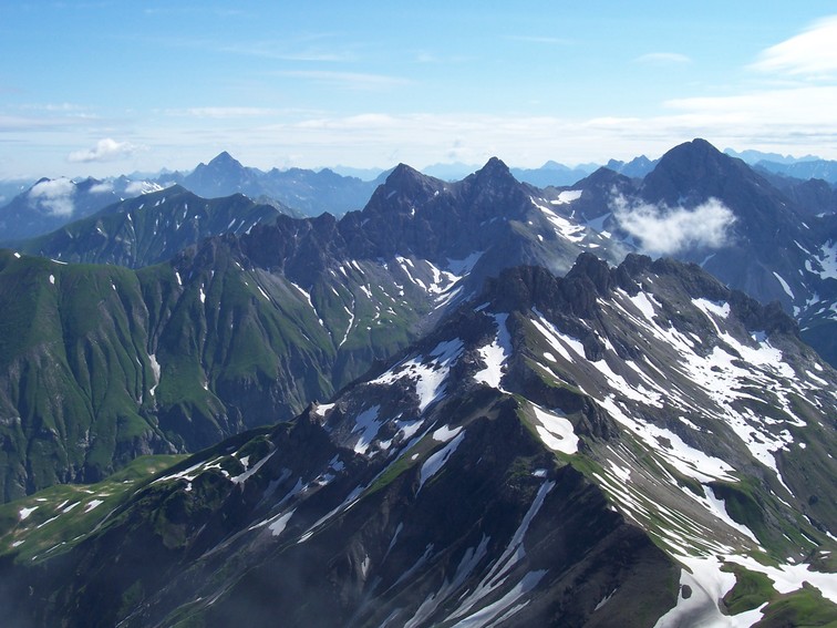 ![]() Auf dem Steig zur Mädelegabel: Im Hintergrund der Hochvogel