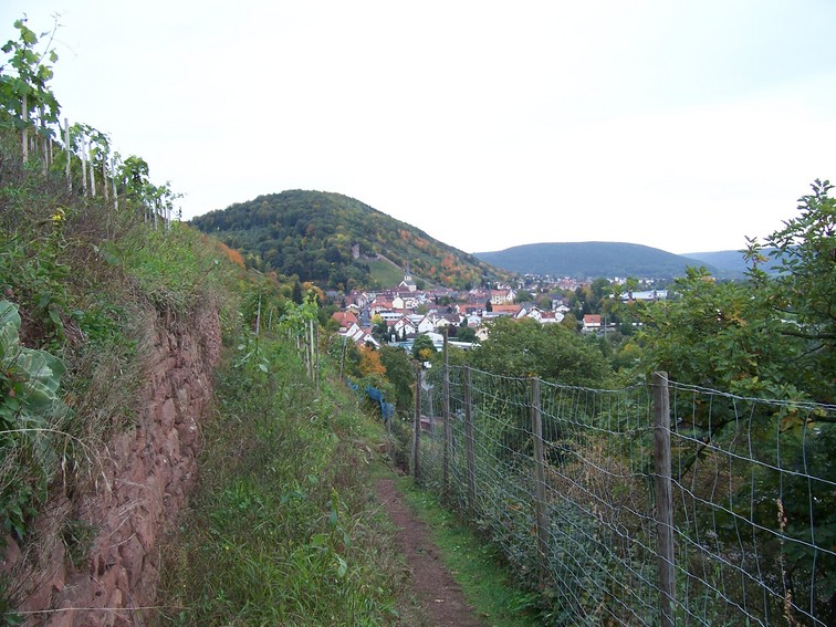 Wieder auf dem Pfad im Weinberg mit Blick Richtung Klingenberg