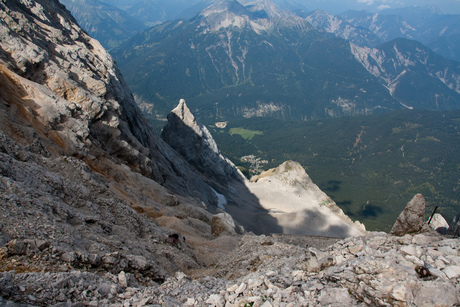 ![]() Blick hinab über den Stopselzieher-Steig zu Sonnspitzl und Wiener-Neustädter-Hütte