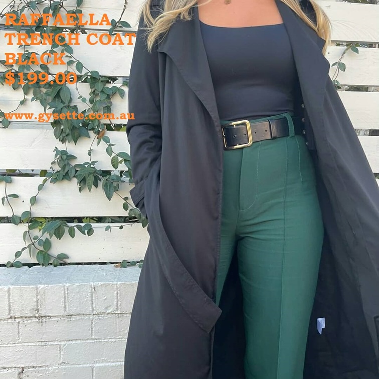 ![]() The perfect trench coat in black. The Raffaella introduces contemporary lines and traditional craftsmanship. Crafted from a soft wool-blend, this traditionally tailored trench is a timeless staple to treasure. Shop now at https://gysette.com.au/product/raffaella-trench-coat-camel-black/