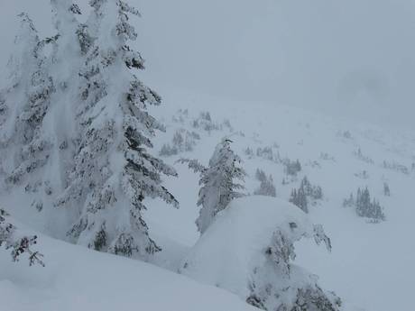 Der Wind formt interessante Eis-Gebilde an den Bäumen.
