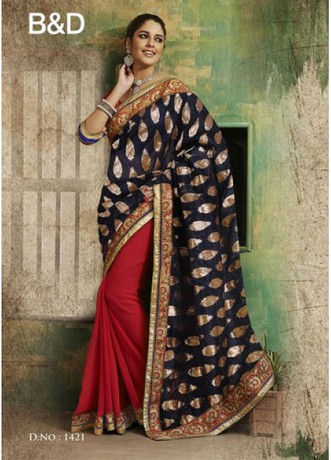 Red and Black Embroidery saree its work based on embroidery work and handwork, with dupian blouse, D-Bemberg skirt and Viscose pallu.
