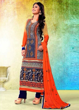 Enjoy marvelous loooking with this Mouni Roy Karachi suit. This Suit is accompamies with Printed work,Resham work and Embroidery work. It give an excellent look worn matching Dupatta come with this suit.