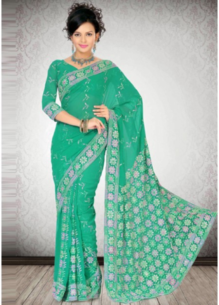 Make The Heads Flip The Moment You Costume Up In This Stunning Green Faux Georgette Saree. The Ethnic Patch Work|Resham Work To Your Dress Adds A Sign Of Elegance Statement For Your Look. Paired With A Matching Blouse. Make The Heads Flip Whenever You Dress Up With This Appealing Deep Blue & Pink Brasso|Chiffon Saree. The Ethnic Aari|Patch Work|Resham|Stones|Unique Border Work Work Over A Dress Adds A Sign Of Attractiveness Statement With A Look.