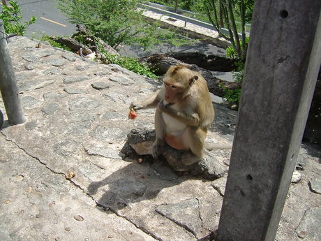 好命的猴子,太熱不出來吃東西,都被遊客餵飽了