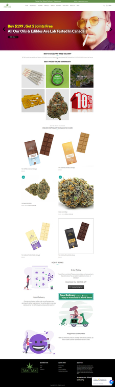 We provide online CBD oil Delivery in Vancouver BC. All payments must be done via Cash upon delivery in City of Vancouver and North Shore. Call us 1-800-621-1975. E-Mail: 200takitaki@gmail.com. Taki Taki Vancouver Weed Delivery Same Day, is one the most creditable online delivery trusted by many loyal clients and has over 3K followers on Social media.Taki Taki does FREE LOCAL delivery in Vancouver and North Shore within two hours over $98 or Flat Shipping Fee of $12 . All payments must be done via Cash On Delivery.Now, you can buy weed from your mobile phones using our Takitaki mobile app. Click the button below to download the app.