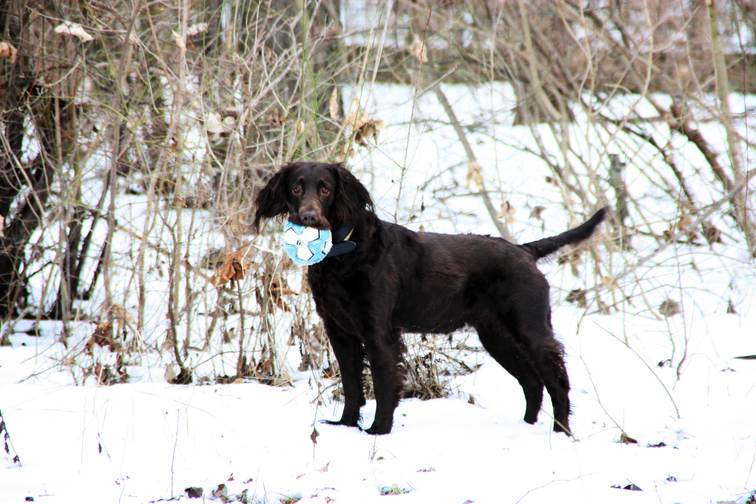 it`s a labrador-german spaniel (deutscher Wachtelhund) mix :)
