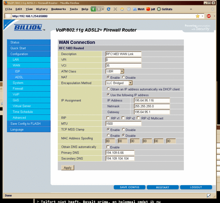 ![]() Billion BiPAC 7401 Nov. 21 10.50