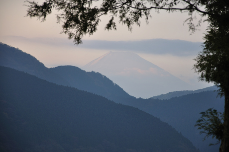 A faint glimpse of Mount Fuji