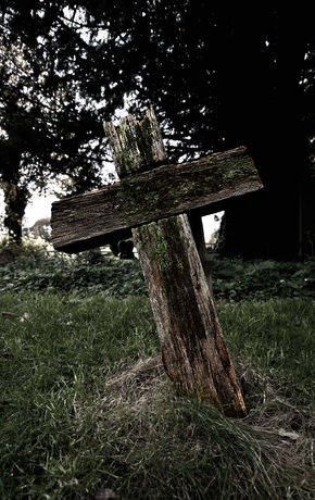Wooden cross in the churchyard in Combe