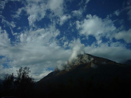 Clouds on autumn sky over swiss mountain