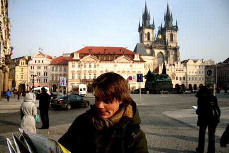 Jeppe prøver at finde en kirke med to tårne?