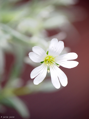 セラスチューム 学名: Cerastium tomentosum L. 別名:シロミミナグサ(白耳菜草), ナツユキソウ(夏雪草) ルーフバルコニー、鉢植え 細毛に覆われた細いシルバーリーフは、 寄せ植えの引き立て役として使われることが多いですが、 ハート型の花弁の透き通るような白い花もとても可愛い。 生育旺盛ですが蒸れには弱いので、風通し良く、 痛んだ下葉を取り除くなどの作業は必要です。 tags: flowers 花 |