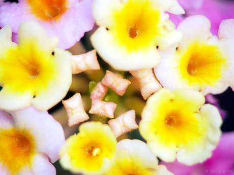 ランタナ(Lantana、学名:Lantana camara) クマツヅラ科 Verbenaceae ランタナ属 Lantana 日陰、プランター、2年目。 こぼれ種で簡単に発芽し、これもお隣からこぼれてきたもの。 地面から芽を出したものは、放っておくと大変なことになるので かわいそうだけど適宜抜いている。鉢植えでもかなり大きく育つ。 色の変化も美しいが、四角い蕾が楽しい。 tags: flowers 花 |