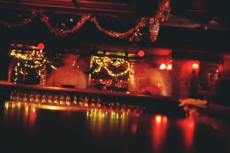Blurry men at a bar with a number name... 704 in Canton, Ohio. The holiday lights are nice... the bar was dank and sleasy. 12/28/06