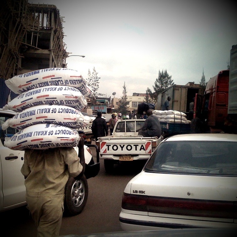 Actually, shouldn't really complain. This is the worst of the central Kigali roads. Trucks unload goods throughout the day. From http://kigaliwire.com |