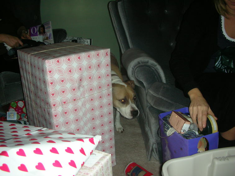 Scarlet creeping on the presents