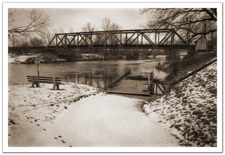 Titel: "außer Betrieb" Beitrag zum IzKF-Thema im Februar: "gealtert" "Außer Betrieb" ist weder die Fähre noch die Brücke bei Pettstadt (LK Bamberg). Im Sommer wird die Fähre besonders von Wanderern und Radfahrern genutzt und über die Brücke fahren noch Güterzüge. Die Fährverbindung über die Regnitz bei Pettstadt gibt es vermutlich schon über 500 Jahre. |
