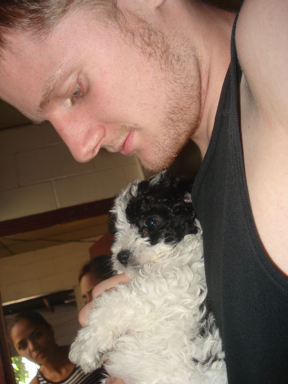 Anders med hundehvalp... Ligemeget hvor vi er faar vi stukket smaa soede dyr, eller laekkerier i haanden... Herligt land... Dette her var paa en restaurant hvor vi opholdt os under en time, men vi skulle da lige se deres hundehvalpe...