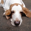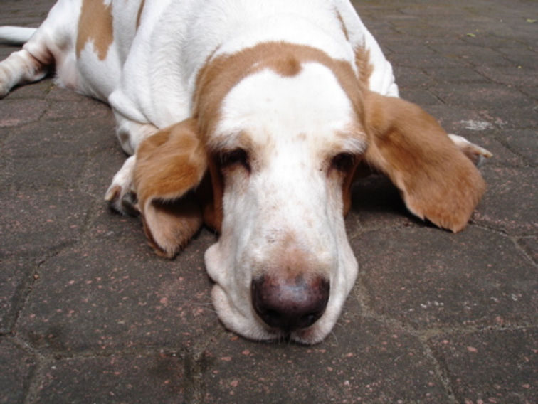Jonah our basset chills out on the driveway.
