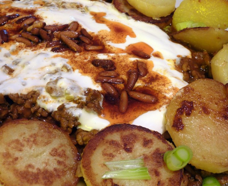 Variation of fatteh using potatoes instead of bread.