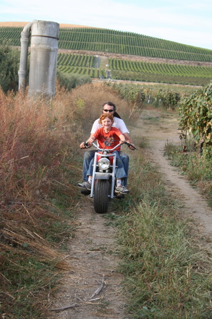 Troy and Connor on "runaway road" in the grapes