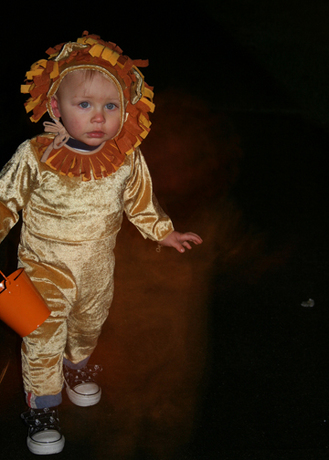 walking down the street, trick or treating