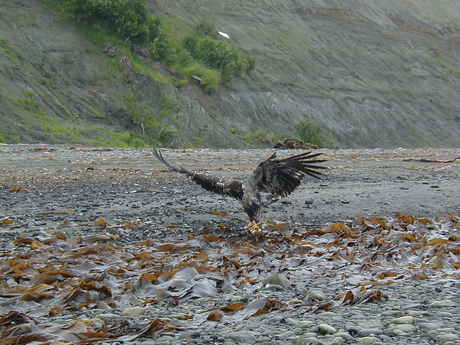 eagle...fish is too heavy to fly away with!
