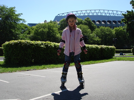 Laura on her brand new rolorskates - very impressive how fast sho got it