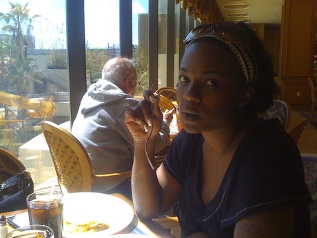 Not pleased to have pic taken while eating.