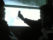 Ulla-Maaria in the little mountain train that took us up to the slopes.