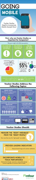 In more recent years, there has been a shift in the use of technology. Online websites and tracker studies are still applicable to the business world, but there has been a shift in power to mobile devices. Many consumers now use mobile devices such as smartphones and tablets to help make purchases. Because these devices are carried with consumers most of the time and are used for over half of online traffic, it is important that companies respond to the trend of “going mobile.” Using mobile tracker studies allows companies to more effectively evaluate consumer behavior, as well as brand image and performance. Knowing this information is vital to a company’s approach to business. The following infographic gives you a more detailed understanding of the importance of going mobile. Continue reading to discover why, mobile sample into existing (or new) tracker studies are so vital to a company’s success. |