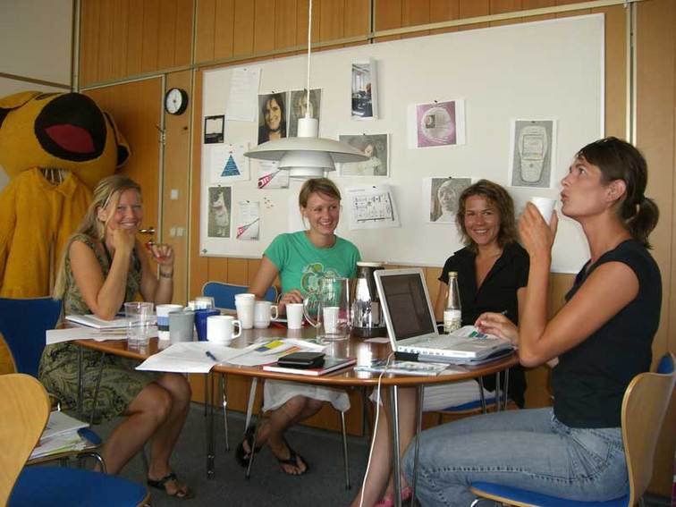 Det første projektgruppemøde efter sommerferien, hvor der er kommet tre nye til: Speakercoordinator Rie Bornfeld, Indretningsdesigner Nanna Friborg og eventkoordinator Camilla Bugge, der står for at arrangere et brag af en fest torsdag aften. En ren tøseklub...