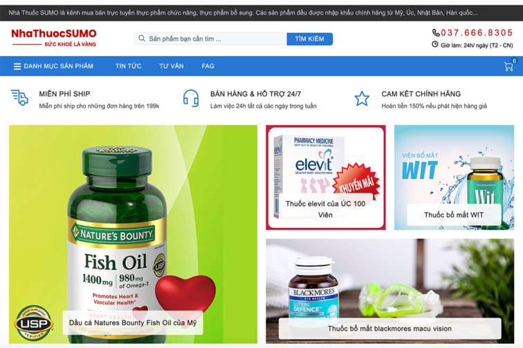 Nhà Thuốc SUMO là kênh mua bán trực tuyến thực phẩm chức năng, thực phẩm bổ sung. Các sản phẩm đều được nhập khẩu chính hãng từ Mỹ, Úc, Nhật Bản, Hàn quốc... Và các nhà phân phối uy tín trong nước. Các sản phẩm chúng tôi cung cấp bao gồm: Vitamin & khoáng chất, thuốc giảm cân, thực phẩm hỗ trợ hệ tiêu hoá, thực phẩm bổ sung chất xơ, thuốc bổ xương khớp, thuốc sinh lý.