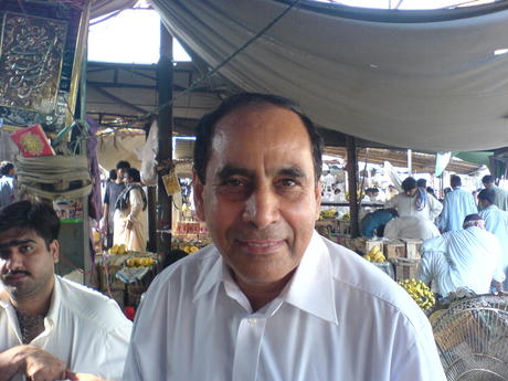 Babar's father at the early-morning fruit market picking up a crate of mangos for each uf us. Yummy said my wife...
